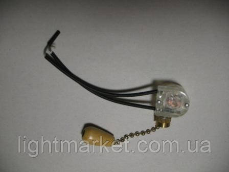 Вимикач для настінного світильника з ланцюжком під золото і дерев'яним наконечником.