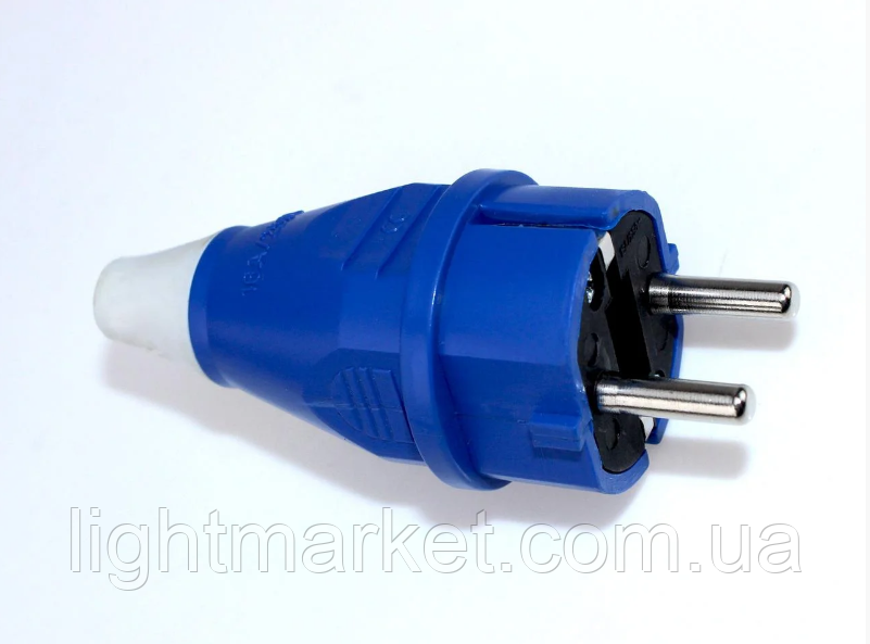 Штепсельна вилка — частина з'єднувача для підключення споживача електроенергії до розетки. Електричні контакти вилки зазвичай мають форму штирів, які надають їй деяку схожість зі столовою виделкою, від чого і походить російська назва назву. Може з'єднуватися з електроприладом гнучким кабелем (шнуром), або бути нерухомо закріпленою на ньому. Вилка латунь синя з заземленням 16 Ампер 250В (Вольт).